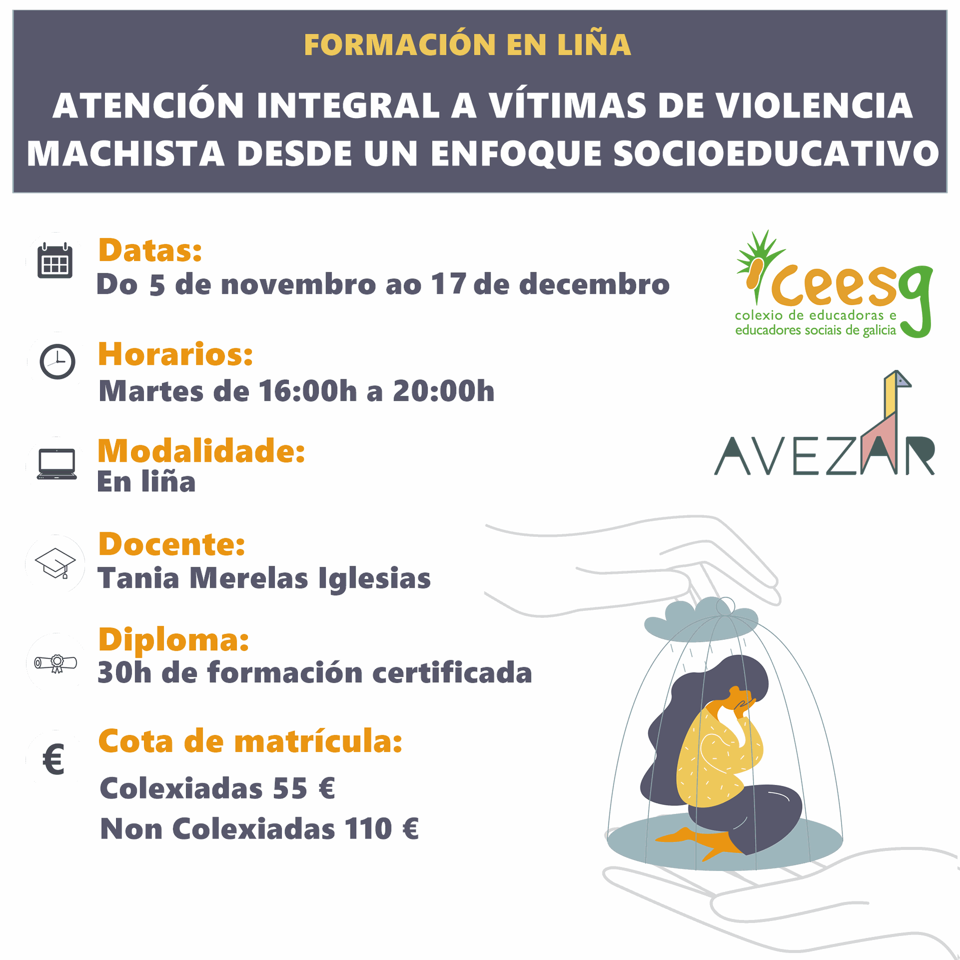 Esta formación ten como obxectivo formar a profesionais do ámbito socioeducativo e da intervención social na atención integral a vítimas de violencia machista.