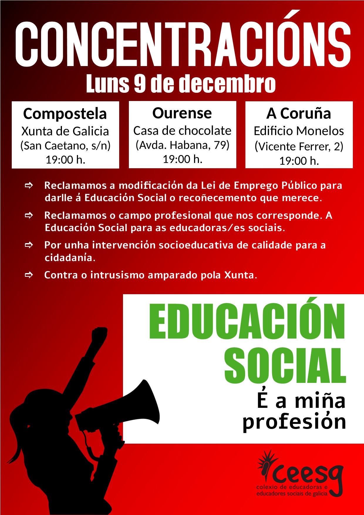 O día 9 de decembro as Educadoras e Educadores Sociais de Galicia saímos de novo ás rúas; Saímos de novo ás rúas!