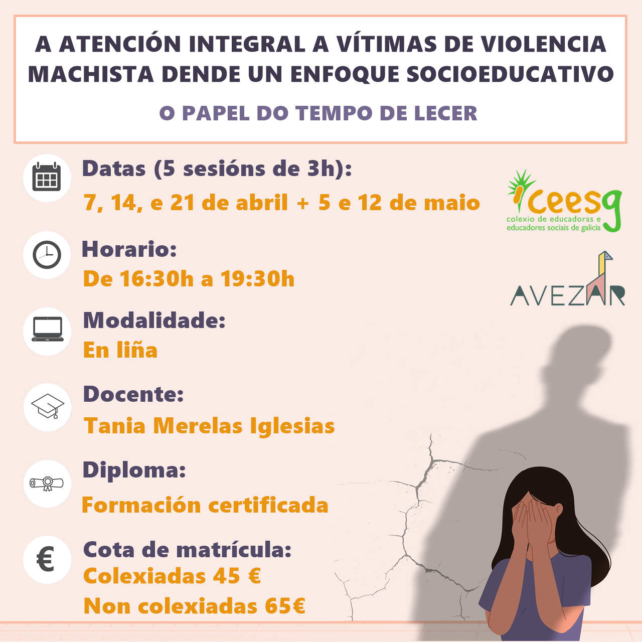 Esta formación ten como obxectivo formar a profesionais do ámbito socioeducativo e da intervención social na atención integral a vítimas de violencia machista.